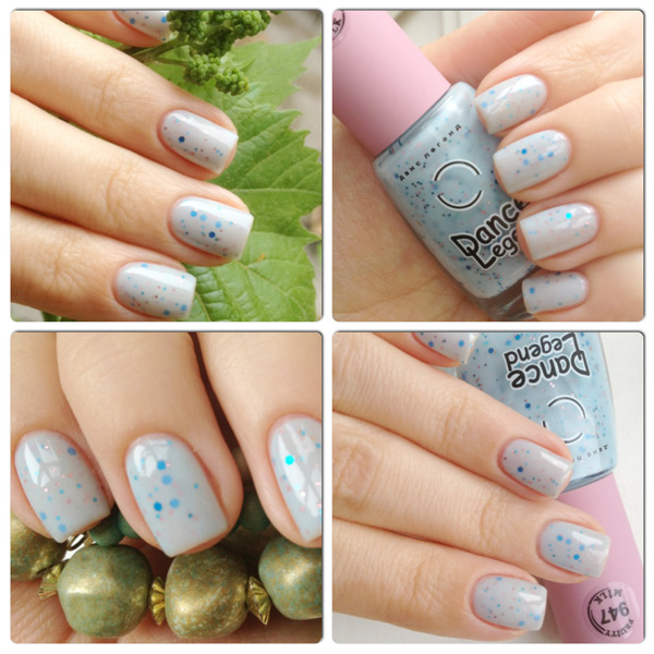 очень красивый полупрозрачный лак с голубым глиттером, быстросохнущий.